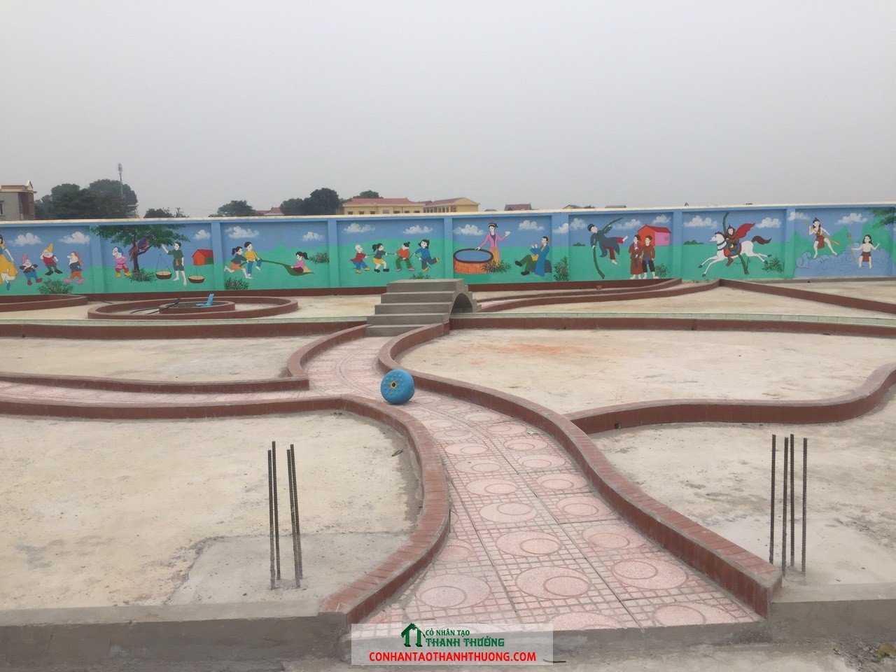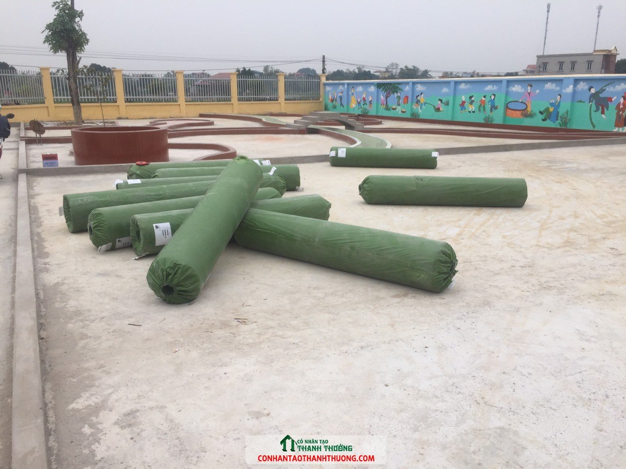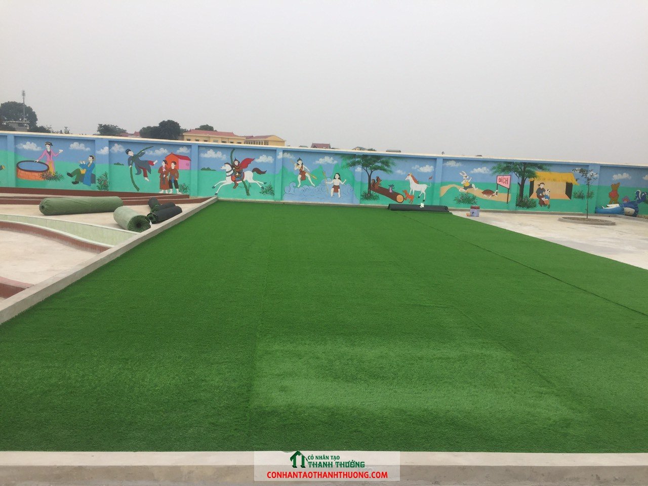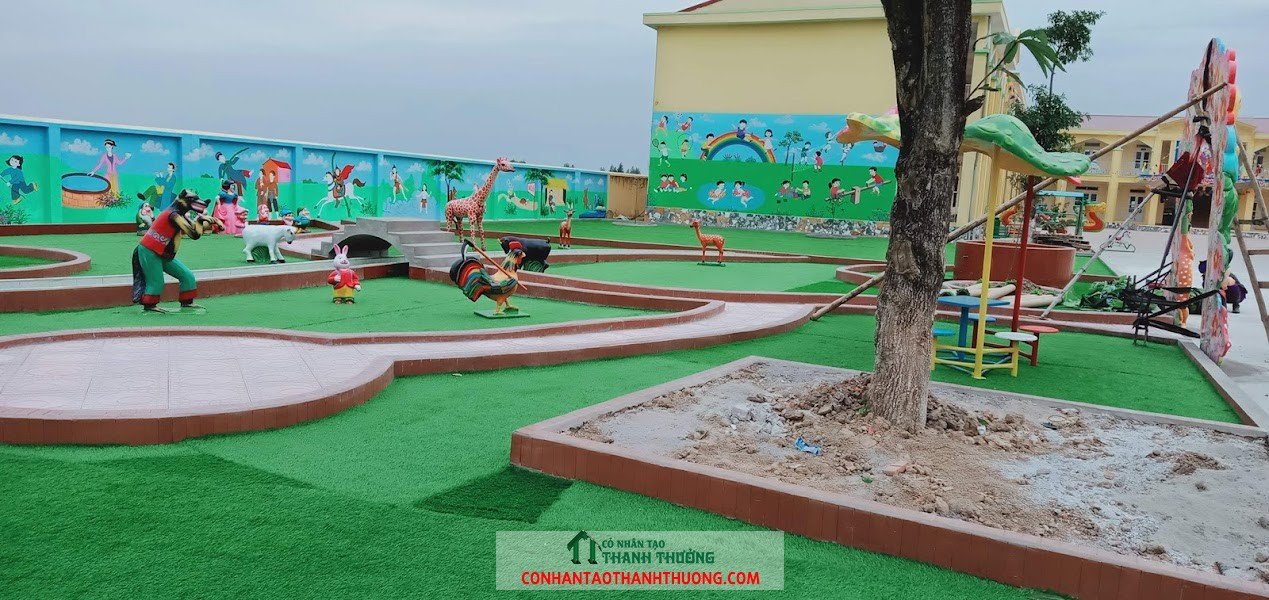 Thi công cỏ nhân tạo sân vườn tại trường mầm non Hùng Thắng